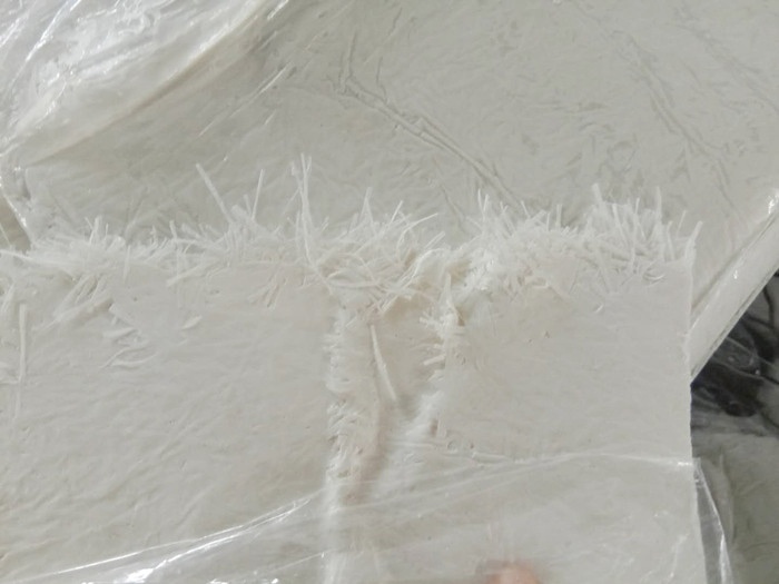 首先,我們需要把不飽和樹脂和玻璃纖維等原材料混合形成片材。其樹脂的作用就好比是混凝土,纖維紗的作用就好比是鋼筋,兩者搭配才能使其更加堅(jiān)固。形成片材的同時(shí),成形的片材需要用塑料膜包住,起到保護(hù)作用。