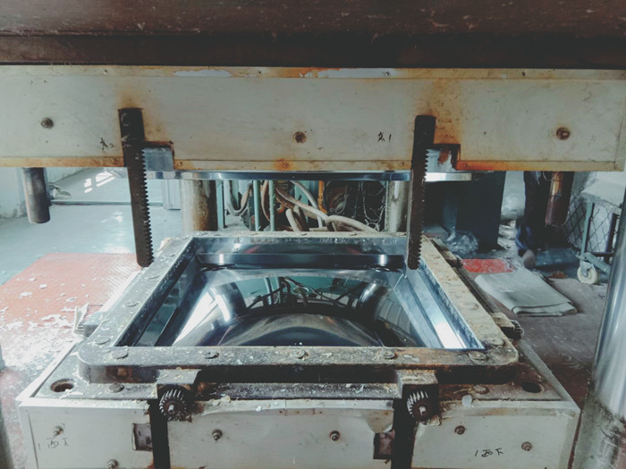 把稱重完成的片材放入模壓機(jī)內(nèi),經(jīng)過一定的高溫模壓,才能形成水箱板。而水箱板表面的光滑程度主要取決于水箱板磨具,故此,一個(gè)好的水箱磨具也是至關(guān)重要的,而水箱板的厚度決定了模壓的時(shí)間,水箱板越厚模壓時(shí)間越長(zhǎng)。