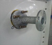 玻璃鋼水箱第三步:螺栓穿出之后就要放上法蘭了,注意法蘭的斜面是和水箱板的斜面相對應的,放準為好,在放法蘭之前還是要用到膠墊,它的安放位置和上面一樣位于水箱板和法蘭之間,然后打上玻璃膠來密封它,如以下示意圖: