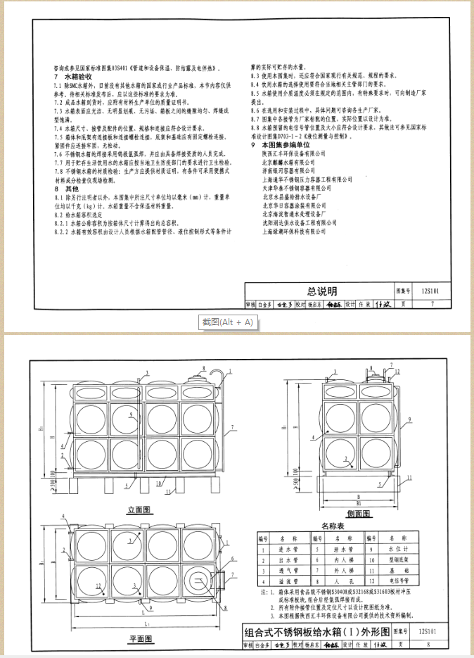 不銹鋼水箱制作標準,是按12S101矩形給水箱圖集設計的,下面是12S101水箱國標圖紙參考頁