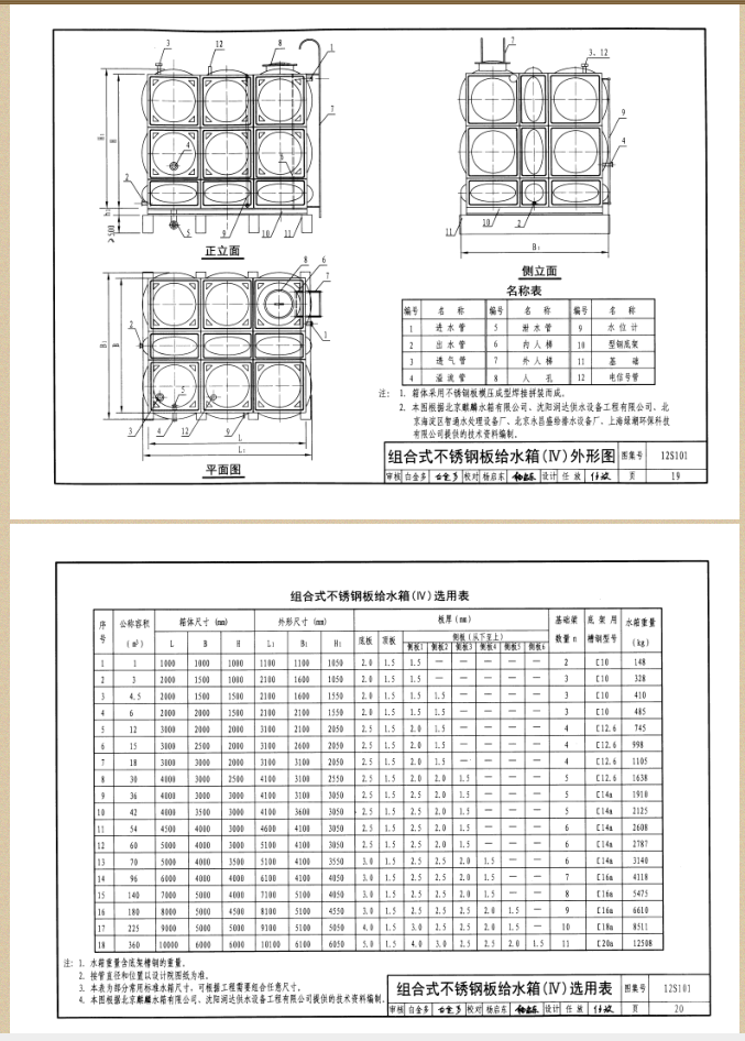 12S101矩形給水箱,不銹鋼水箱國家制作標準